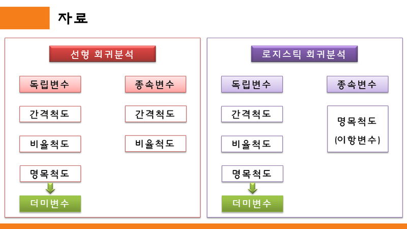 단순회귀분석과 다중회귀분석으로 대표되는 선형 회귀분석은 기본적으로 종속변수와 독립변수 모두 연속형 변수이어야 했으며, 예외적으로 독립변수에 한하여 명목척도를 더미변수로 변환하여 분석할 수가 있었다.